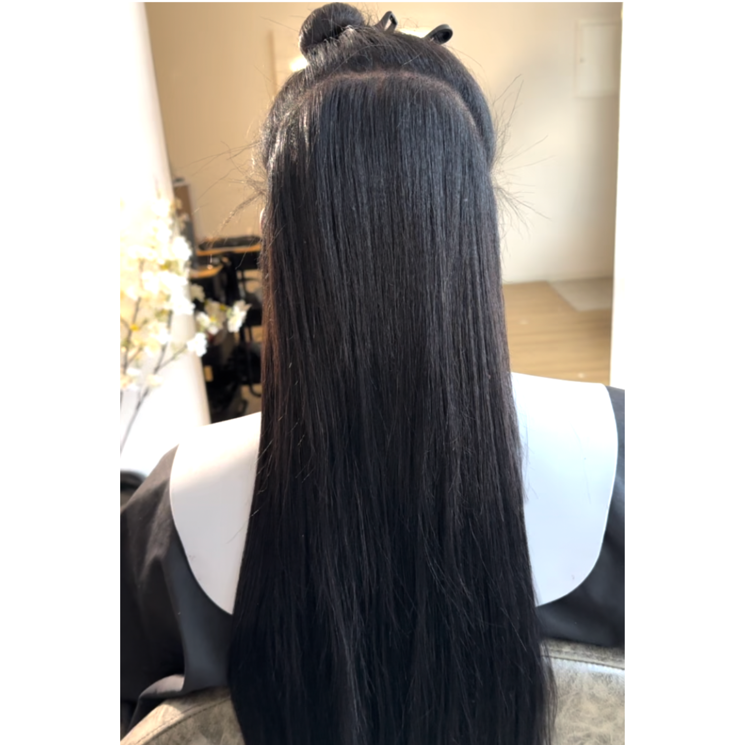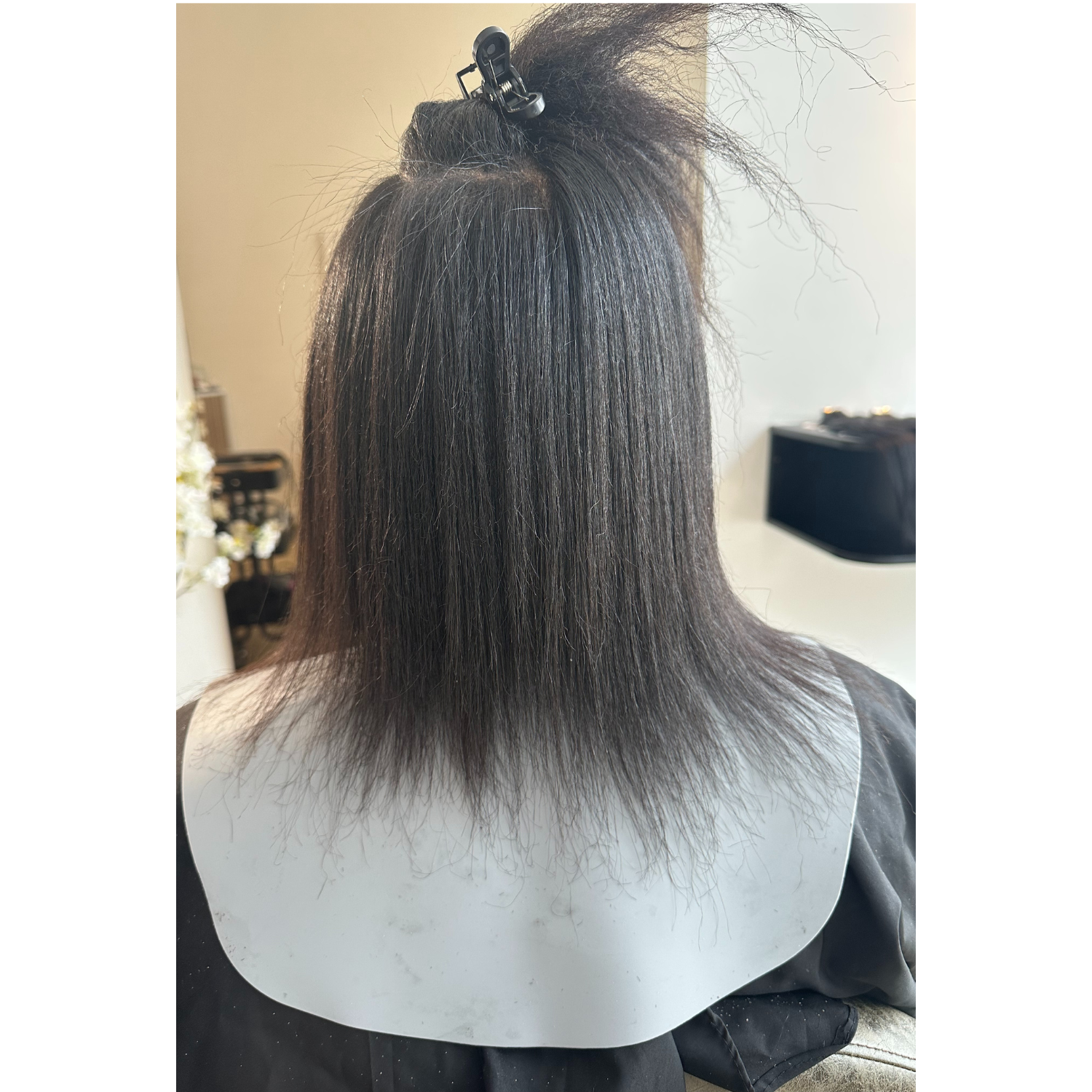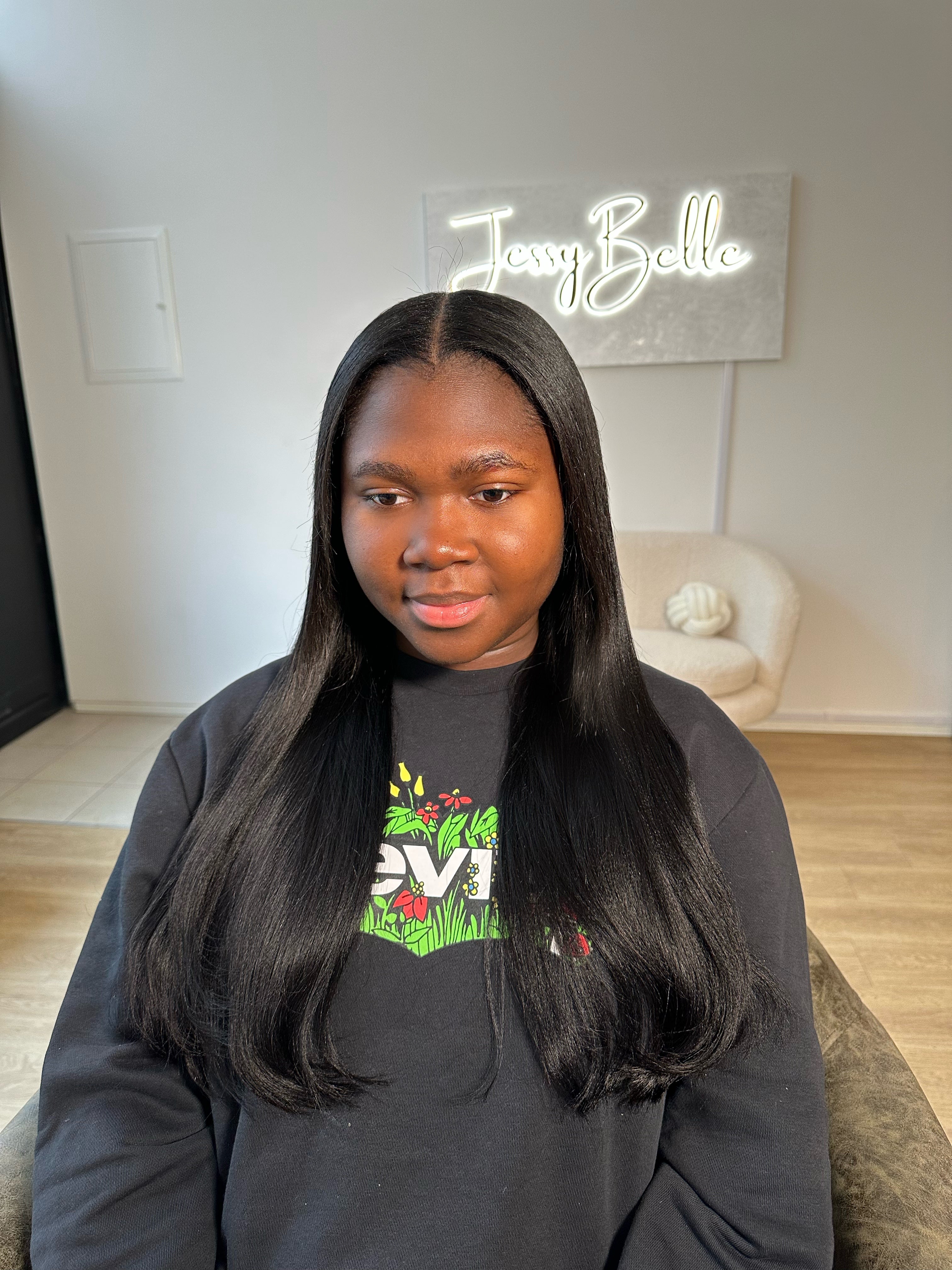 Le service comprend le brushing, le lissage de vos cheveux, l'installation des extensions puis la coiffure.